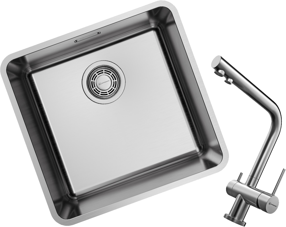 Мойка упакована в пластиковый пакет, пенопластовые уголки, картонную коробку.
