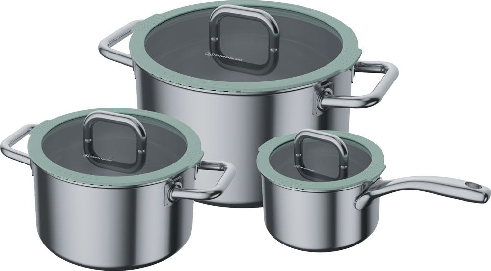 Набор посуды Kenrei — это идеальное решение для тех, кто стремится создать комфортную и функциональную кухню. Набор посуды выполнен из нержавеющей стали. Корпус состоит из пяти слоев: внутренние стенки и дно изготовлены из высокопрочной нержавеющей стали SUS304, а внешняя часть корпуса - из сохраняющей тепло нержавеющей стали SUS430. Данный вид стали является магнитным, что обеспечивает совместимость посуды с индукционными плитами. Посередине находится трехслойная прослойка из сплава с высокой теплопроводностью для быстрого нагрева посуды и равномерного прогревания.