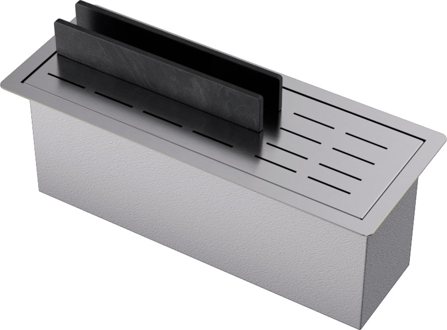 Компактную модель DRY-04 можно разместить в столешнице стандартной глубины 600 мм по правую или левую сторону от мойки, обеспечивая максимальную гибкость планировки. Это позволяет рационально использовать пространство и создавать удобную рабочую зону.